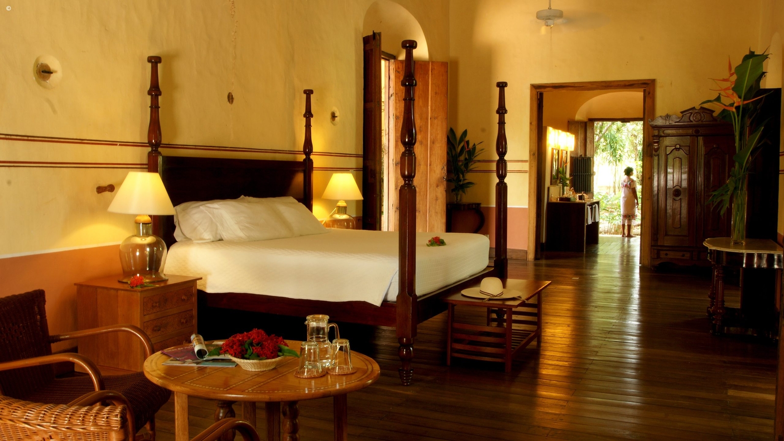 Its 14 bedrooms – five in the main house and nine in the original hacienda outbuildings – are air conditioned and have private baths; common areas including the living room, dining room and terraces ideal for relaxing in the evening.