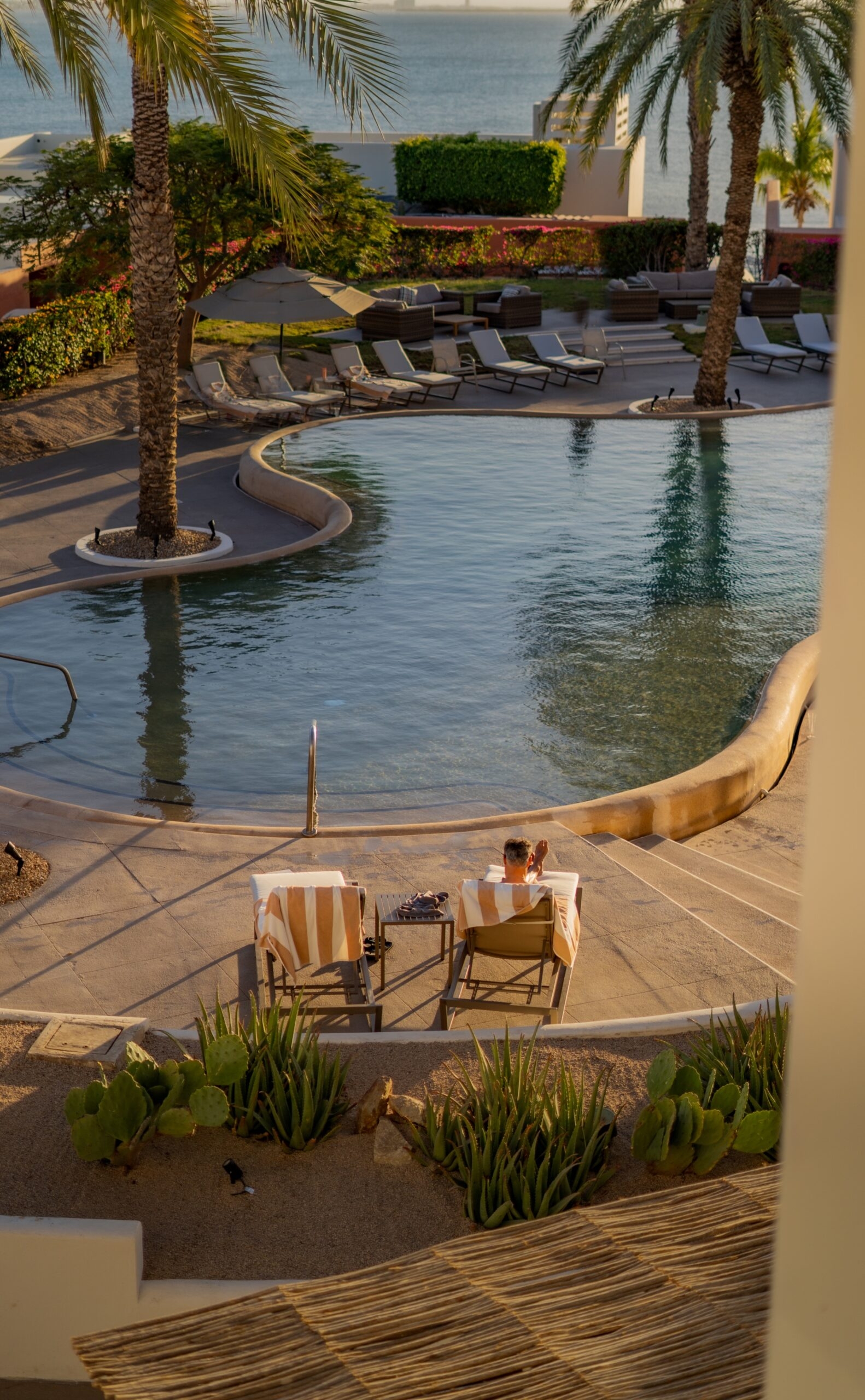 Relax in beautifully designed suites offering stunning vistas of lush gardens, sparkling pools and the bay