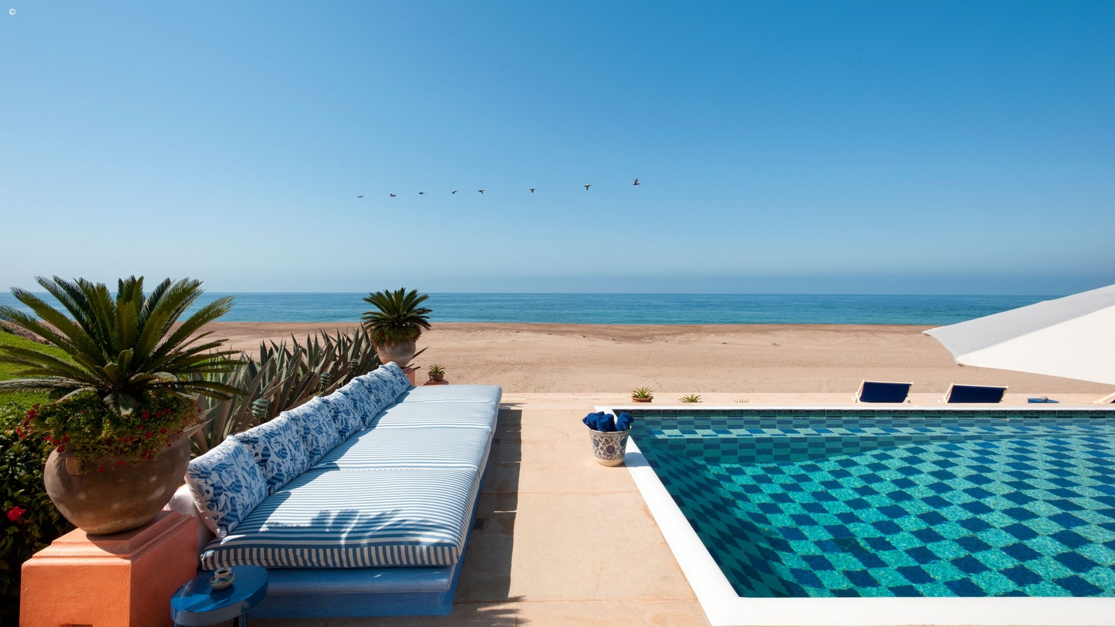 Dine at the sheltered palapa followed by a dip in the spectacular tiled pool on the beach. Retreat at the end of the day in the Master Suite where you can take in the panoramic views and idyllic scenery from your private terrace.