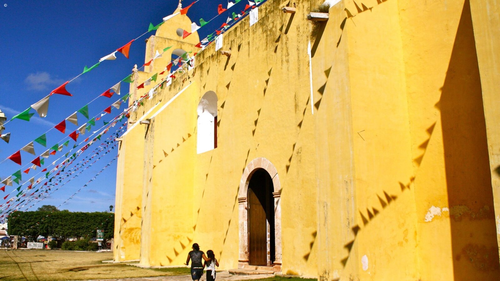 Where the colonial sits atop pre-Colombia origins in the Yucatan’s “Yellow City”