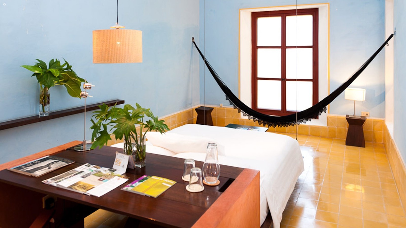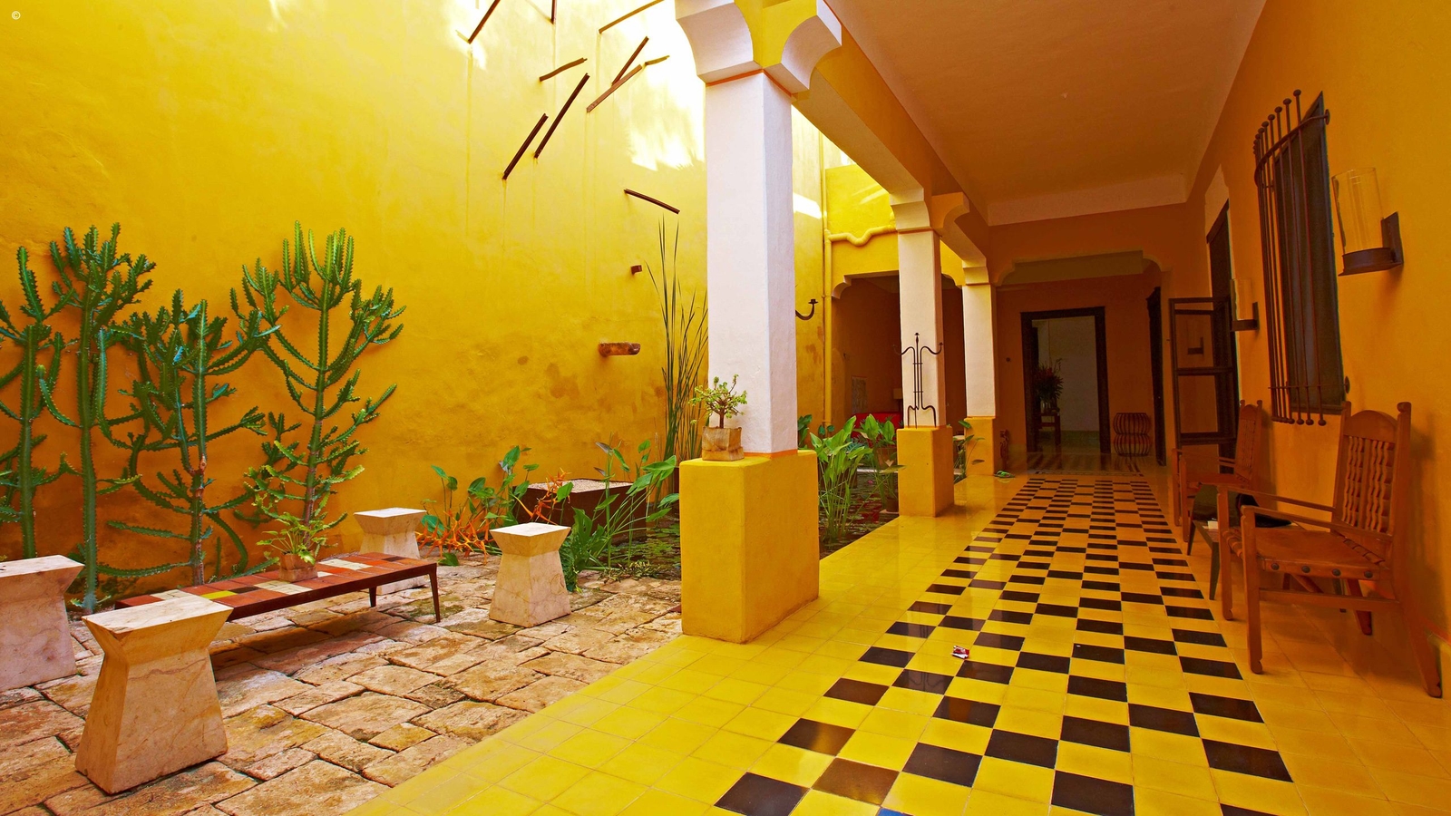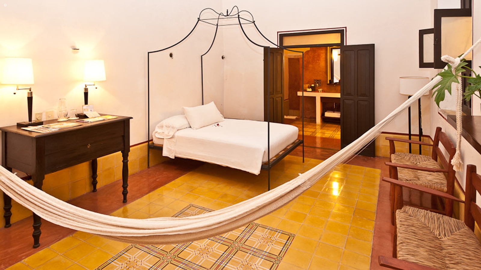 Just a block away from Izamal’s cathedral, you’ll be lead through a modest entrance to find this gem. Although traditional in colonial design painted the same distinctive bright yellow that the town flaunts, marbled floors, a courtyard and terrace with scattered cactuses and palm trees, Casa de Los Artistas spans over three levels, has a lovely sun-drenched pool and rooftop lounge area.
