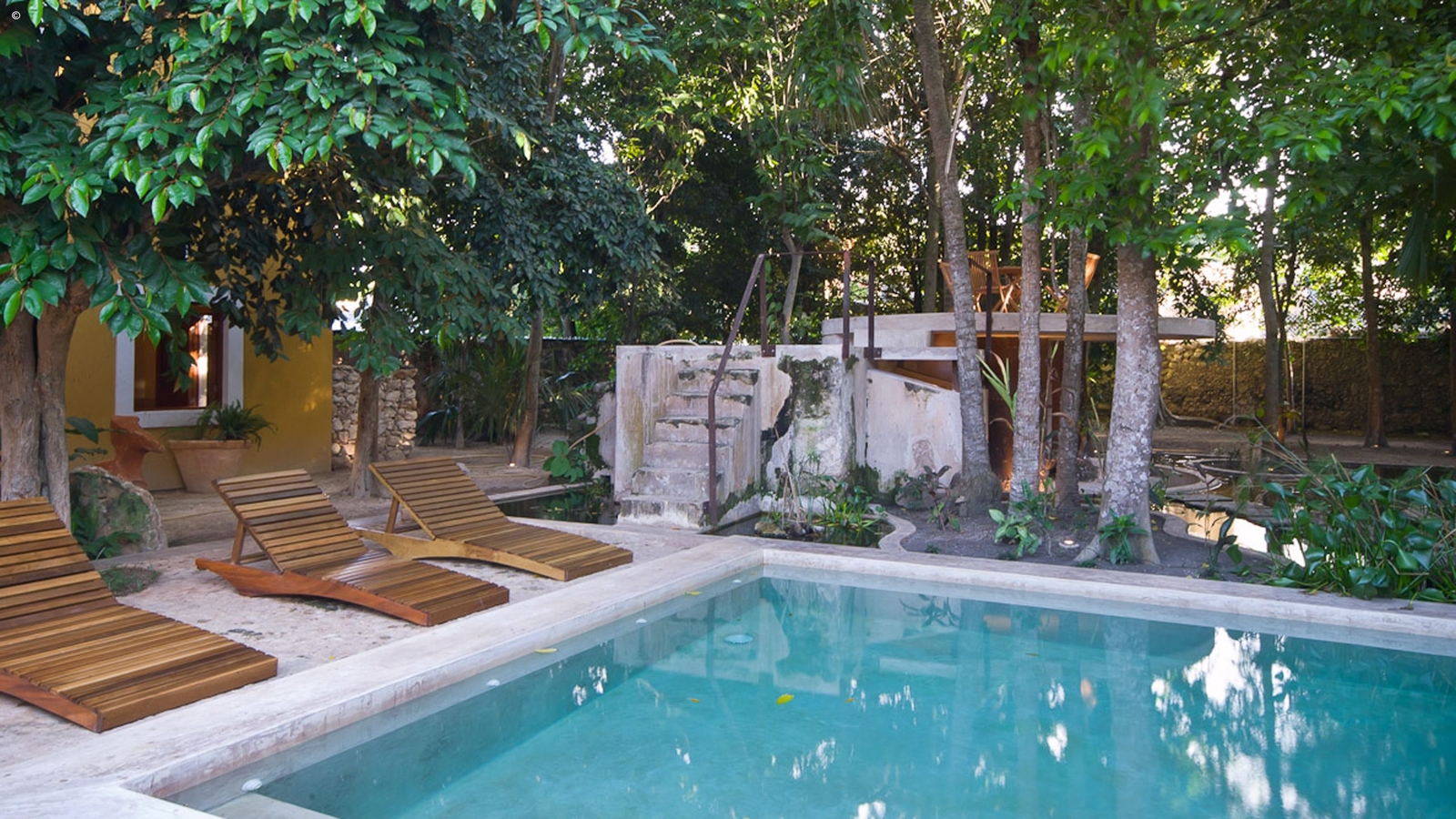 Secluded in a residential neighbourhood, yet within easy reach of the city of Izamal and grand archeological sites, the villa is perfectly located. At the end of a touring day, unwind in your own oasis: cross the tranquil lily pond to take a dip in the pool, have a local dish whipped up for you, or simply laze on the terrace overlooking the gardens.