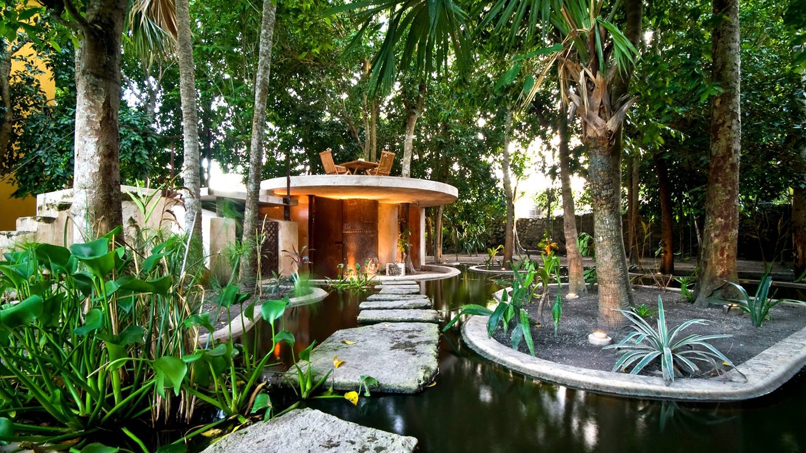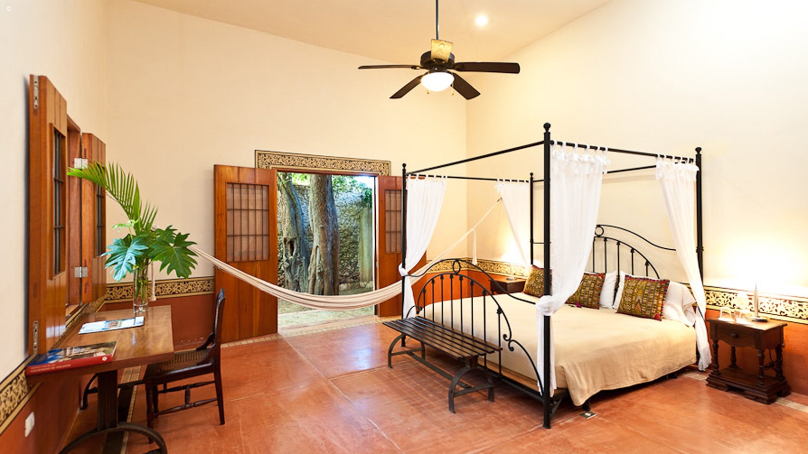 Secluded in a residential neighbourhood, yet within easy reach of the city of Izamal and grand archeological sites, the villa is perfectly located. At the end of a touring day, unwind in your own oasis: cross the tranquil lily pond to take a dip in the pool, have a local dish whipped up for you, or simply laze on the terrace overlooking the gardens.