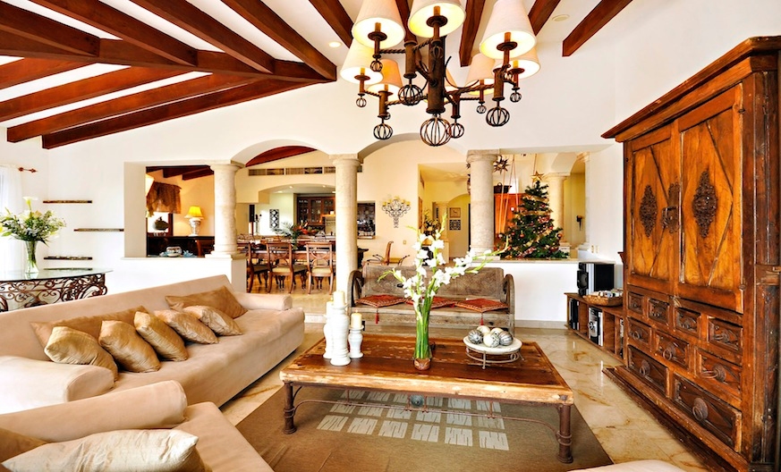 High ceilings with exposed beams and Mexican furniture add warmth to the traditional decor. The open floorplan creates a flow among the kitchen, dining room and living areas; all rooms boast views of the Caribbean. Generously sized, the basement sports a pool table, full bar, bathroom and media room and outside you can find a large swimming pool.