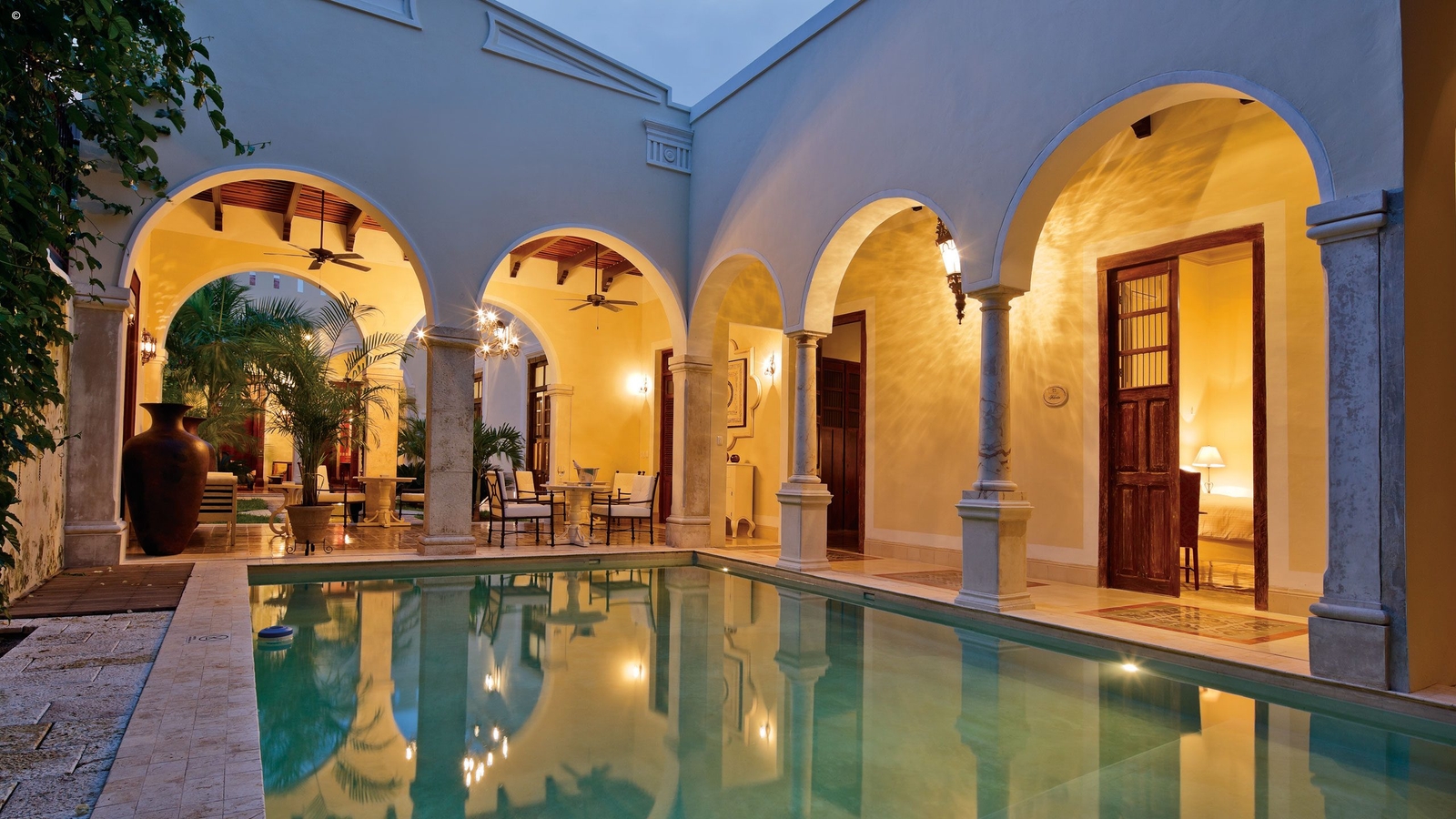 This hotels scores points for both its location, being positioned right in Merida’s UNESCO-protected old quarter, and its elegantly stylish Old World décor.
