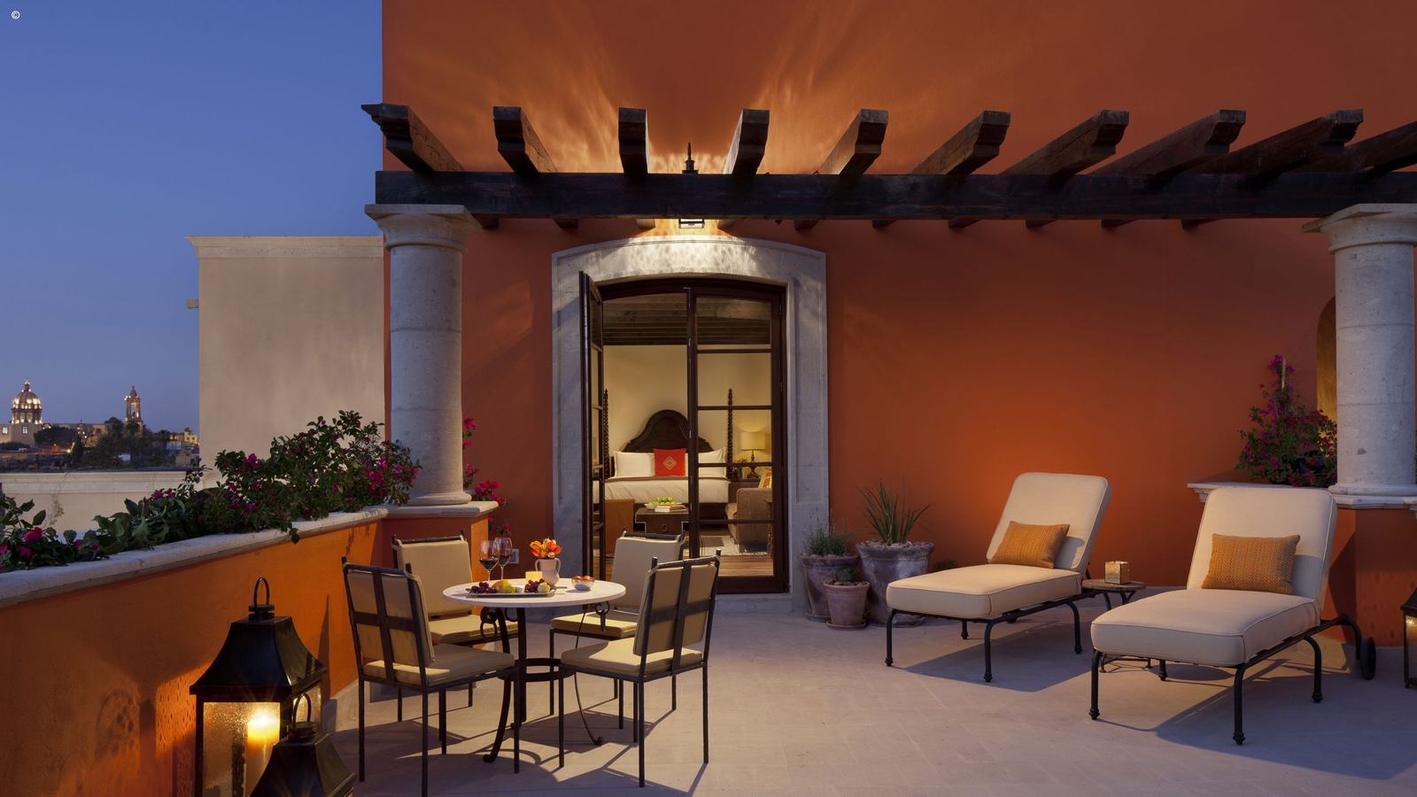 Very much keeping to the Spanish colonial style of the city, the hotel is in the typical urban hacienda style of courtyards, arches, cantera columns and traditional dark wood furniture. However belying its classical character, all of its spacious rooms have been renovated to high modern standards, and there’s an excellent spa, wine cellar, kids club program, as well as a spoiling menu of activities.