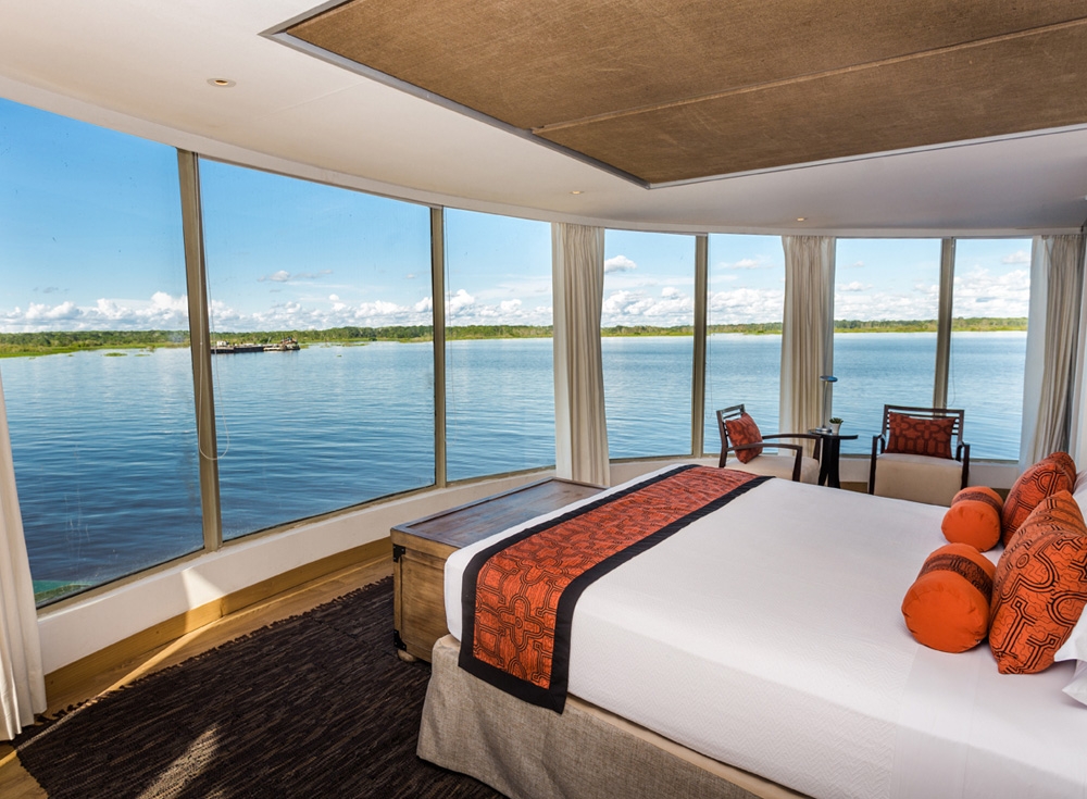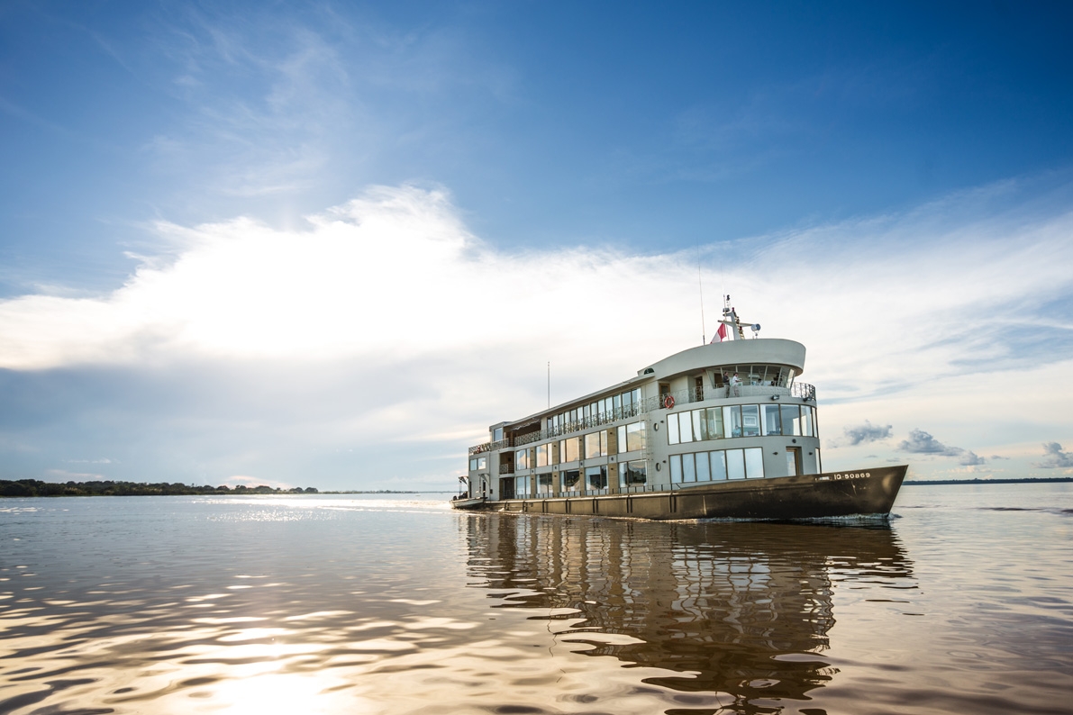 Explore the waterways of the Amazon aboard the newest vessel, the Relais & Châteaux Delfin III, for an immersive yet luxurious rainforest experience.