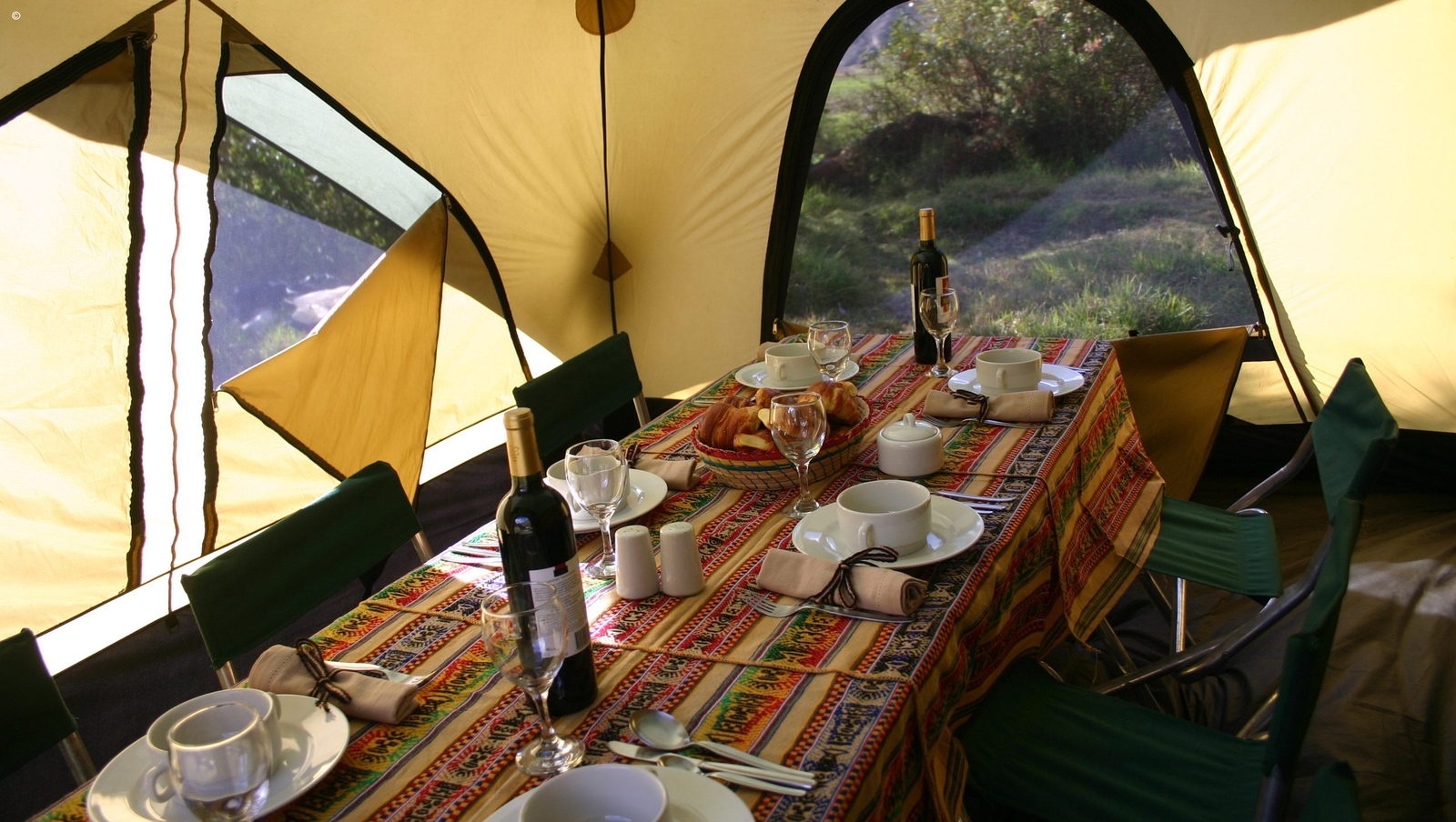 The accommodation consists of four-man tents (with two people allocated to each tent), each equipped with sleeping pads, sleeping bags (-18ºC/0ºF-comfort) and pillows. There will be a dining and kitchen tent, plus a toilet tent with bio-degradable facilities. The camp will be carried by porters and there will also be porters to carry personal possessions of up to 9kg per person.