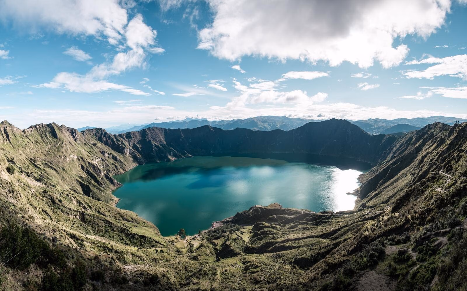 Ecuador is home to one of the best hiking trails in the world for volcanic views: the Quilotoa Loop. Located in the aptly named Avenue of the Volcanoes, this point-to-point hike leads you through the canyons, hills and valleys surrounding the picture-perfect Laguna Quilotoa: a jewel-toned crater lake formed by a volcanic eruption.