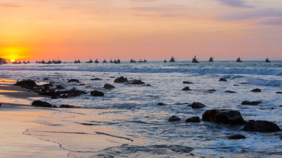 Along northern Peru’s long stretch of coastline, base yourself in the beach towns of Mancora and Punta Sal to witness the arrival of humpback whales. During whale watching season, from July to October, boat trips can be taken to seek out the cetaceans, including pods of dolphins.