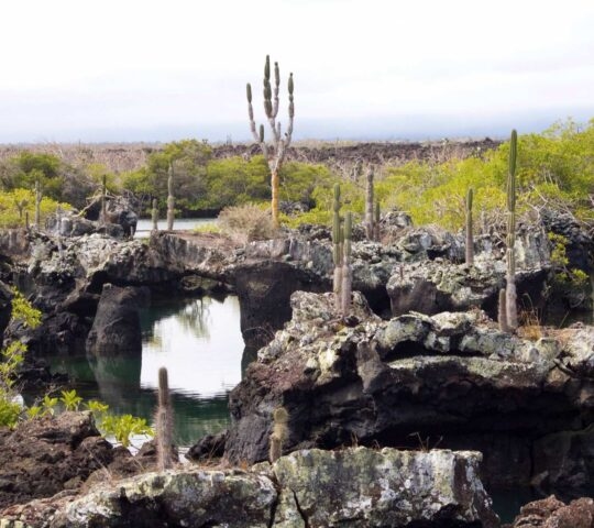 Head out to Los Humedales, to walk through all four species of mangroves that exist in the Galapagos, dotted with solitary beaches, lava tunnels, natural pools and estuaries where you can see flamingos and other birds. You will also visit the Giant Tortoise Breeding Center and see some of the lumbering reptiles out on the trails. Finally see El Muro de las Lagrimas – the Wall of Tears – a wall was built from huge blocks of lava by prisoners as a punishment when Isabela was a penal colony from 1945 to 1959.
