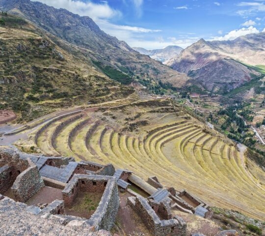 The ruins of Pisac’s citadel are quite spectacularly sited on hilltop above today’s village and its market, on a triangular plateau with a plunging gorge on either side, guarding not only the Urubamba Valley below, but also a pass leading into the jungle to the northeast. The most impressive feature is the agricultural terracing, sweeping around the mountain in graceful curves. Straight from the hands of local craftspeople, you will learn about textiles and the weaving process at the market.