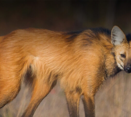 The Cerrado, found in the centre of Brazil, is an expansive savannah region and the second largest – behind the better-known Amazon rainforest – of Brazil’s major habitat types. Hiding among the arid grasslands is the allusive jaguar, the less graceful giant anteater and the giant armadillo, plus one of the most emblematic animals in the region, the maned wolf. This curious creature has golden-red bat-shaped ears, long legs like a deer, the face of a fox and the body of a wolf.