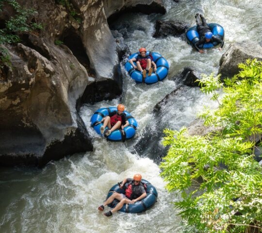 Experience the canyon from the most beloved means of river transportation, the inner-tube. Explore the canyon from this unique perspective, sailing through areas where the rock walls narrow and daylight is scarce. Echoes grow louder and you really get a sense of where you are. But if you remain quiet for a bit, you will find that you are not alone. All kinds of birds and monkeys, and, occasionally, some larger mammals will announce their presence. Look for the hot water spouts along the eastern rock walls.