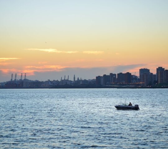 Sail across the Rio de la Plata as the sun sets