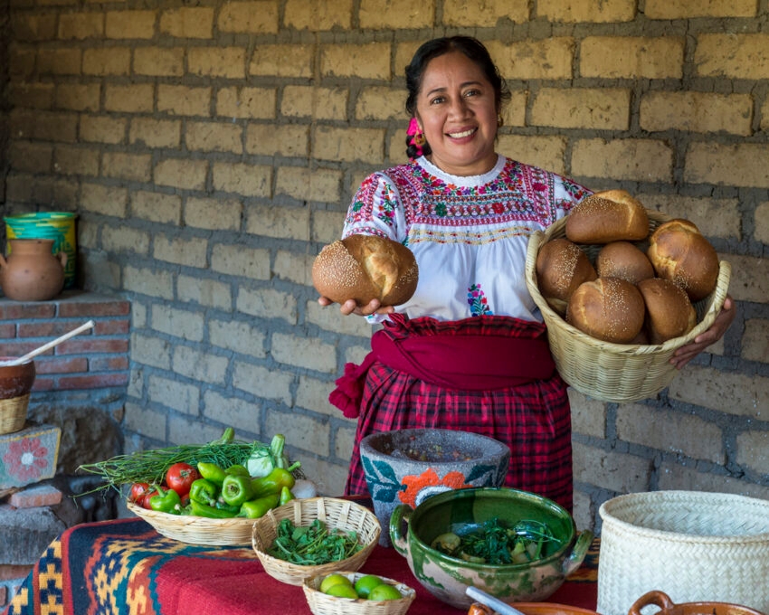 The Zapotec people are an Indigenous group that has faced historical oppression and economic challenges, and through this experience you’ll be directly supporting their community. Together with a private guide, you’ll have the privilege of seeing artisans using traditional techniques to card and spin their own wool before dying it with natural colours and finally weaving on solid wooden looms. Afterwards you’ll be invited into a family home where you’ll take part in an Oaxacan cooking class before sitting down to a sumptuous lunch.