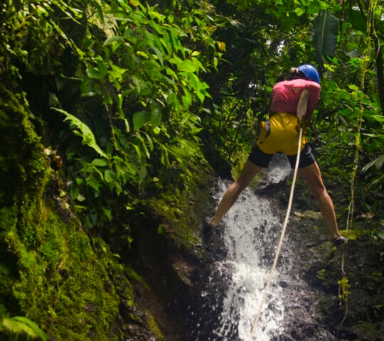 El Tesorito Creek flows out of the mountains behind the Pacuare Lodge into a narrow gorge in the midst of the rainforest. A fun outdoor adventure that includes rock climbing, a descent down a small waterfall, sliding along cables, swinging through the jungle like Tarzan, and rappelling down a 30-meter (100-foot) rock face. The result is a light but exhilarating adventure in an idyllic, natural setting. You’ll rappel down shorter walls – between 2 and 20 meters (6 to 65 feet) – before undertaking the thrilling rappel down a 30-meter (90-foot) cliff.
