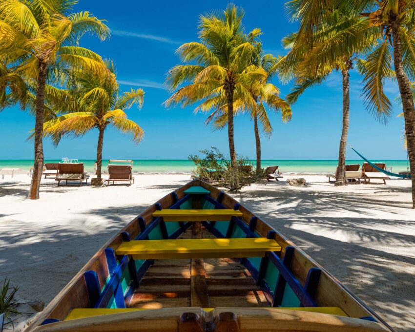 Take the short ferry ride to Holbox, a chic car-free haven off the Yucatán coast where sandy streets are navigated on foot, by bicycle or in colourful golf carts. This wonderfully unspoiled and peaceful paradise in the Caribbean Sea – 40 kilometers long and just 2 kilometers wide – is protected within the Yum Balam Biosphere Reserve. Its expansive shallow lagoons create a haven for spectacular birdlife.
