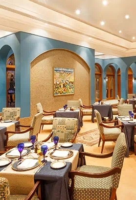 Take a seat for breakfast or dinner in one of the three restaurants at The Oberoi. The hotel’s main restaurant offers international cuisines that can be enjoyed in the dining hall, the open air courtyard, or on the shaded terrace, all of which are complimented by traditional arches and stunning views no matter the time of day.