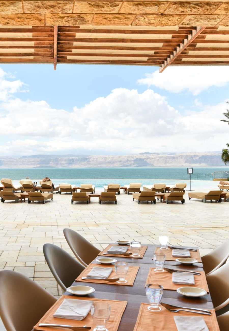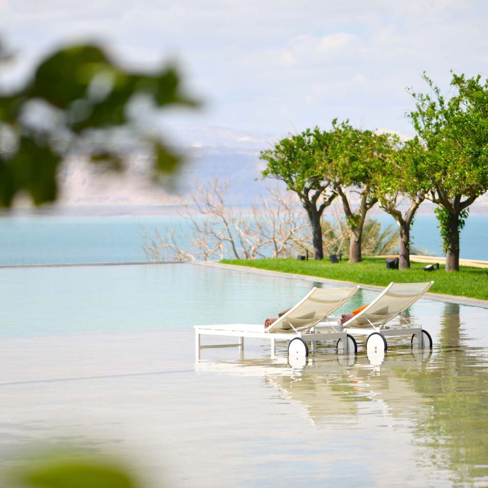 The Kempinski Ishtar Dead Sea is a truly luxurious hotel with incredible ‘sea’ views, beautiful gardens and a range of stunning outdoor social areas. The property’s decor is inspired by the Hanging Gardens of Babylon with natural terracotta colours contrasted against lush green foliage, ornate tiles inspired from traditional levant design and the azure blues of twinkling swimming pools and the calming sea beyond.
