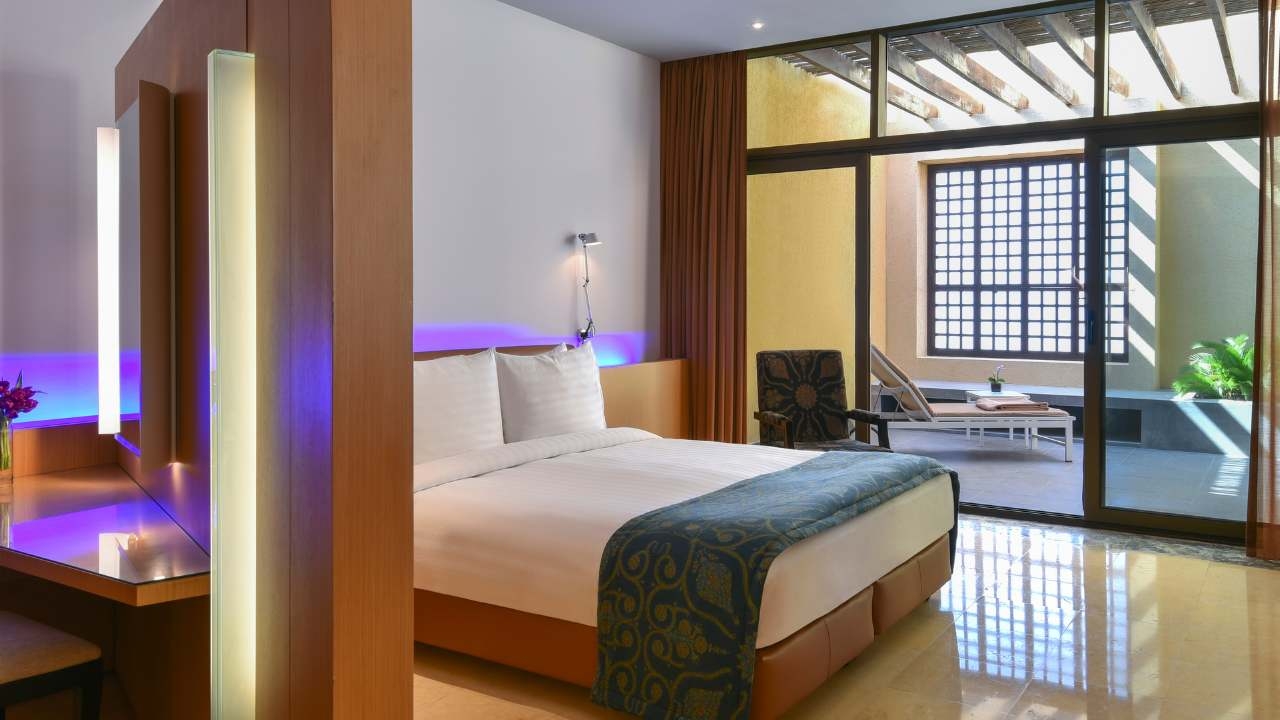 There are 345 rooms and suites at the hotel, ranging from comfortable double rooms to spacious Royal Villas which have sea views, a private infinity pool and exclusive wellness areas. All of the rooms boast an elegant, comfortable design and modern technologies such as individual climate control in all rooms. All lower level rooms and suites come with a beautiful outside balcony to enjoy either sea or garden views.