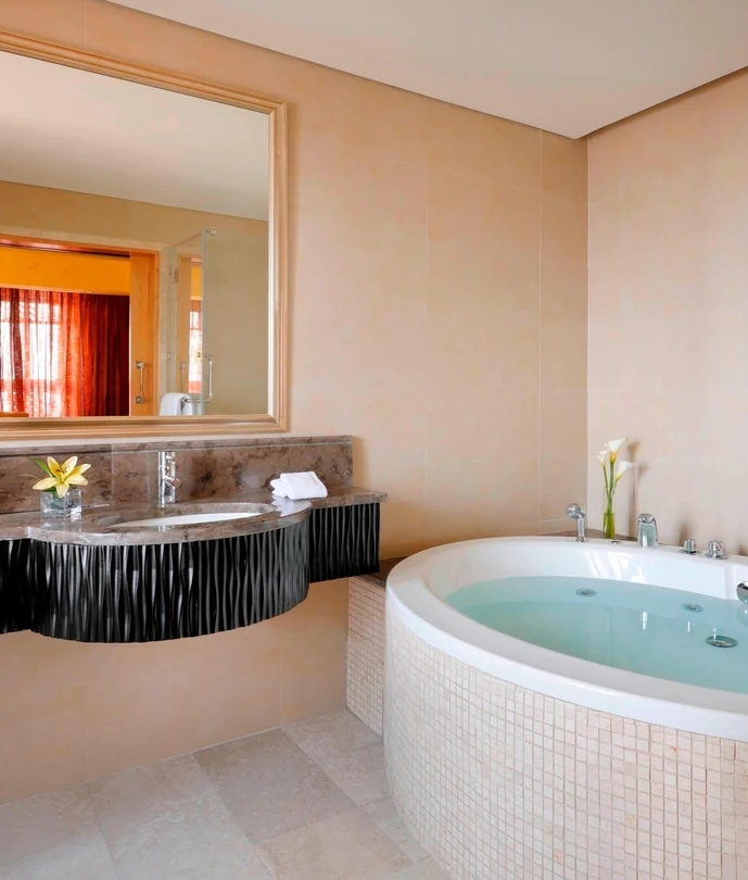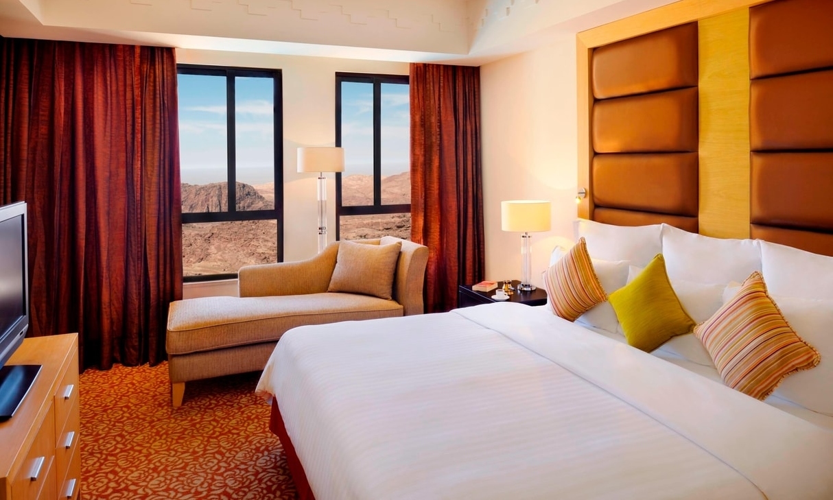 Petra Marriott Hotel, nestled in one of the Seven Wonders of the World, offers spectacular views of the valley. There are over 100 rooms and suites to choose from, including the Premium Guest Room which includes views of the mountains, and the one bedroom suite. This features a marble bathroom. All rooms are spacious and decorated in warm tones and accented with wooden furniture.