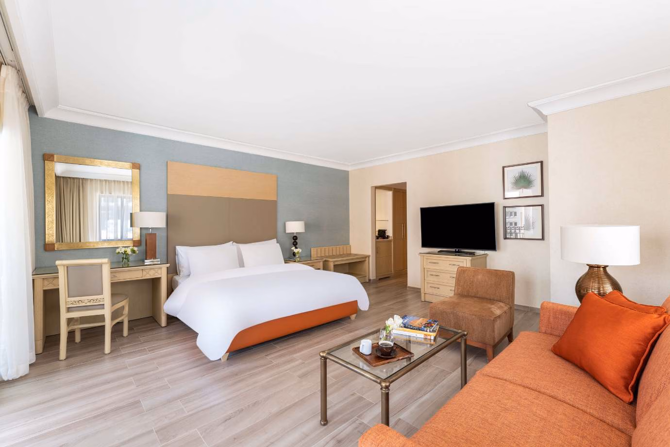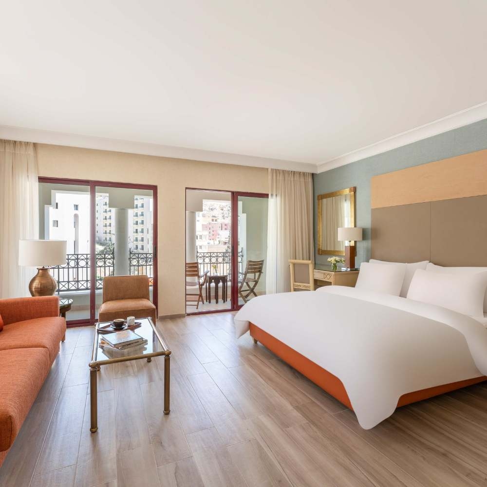 The Mövenpick Petra is a majestic resort style property just steps away from the ancient city of Petra, one of the New Seven Wonders of the World. The hotel decor is contemporary with a distinct nod to levant and oriental design – with many of the social areas featuring mosaics, marble and ornate artefacts.