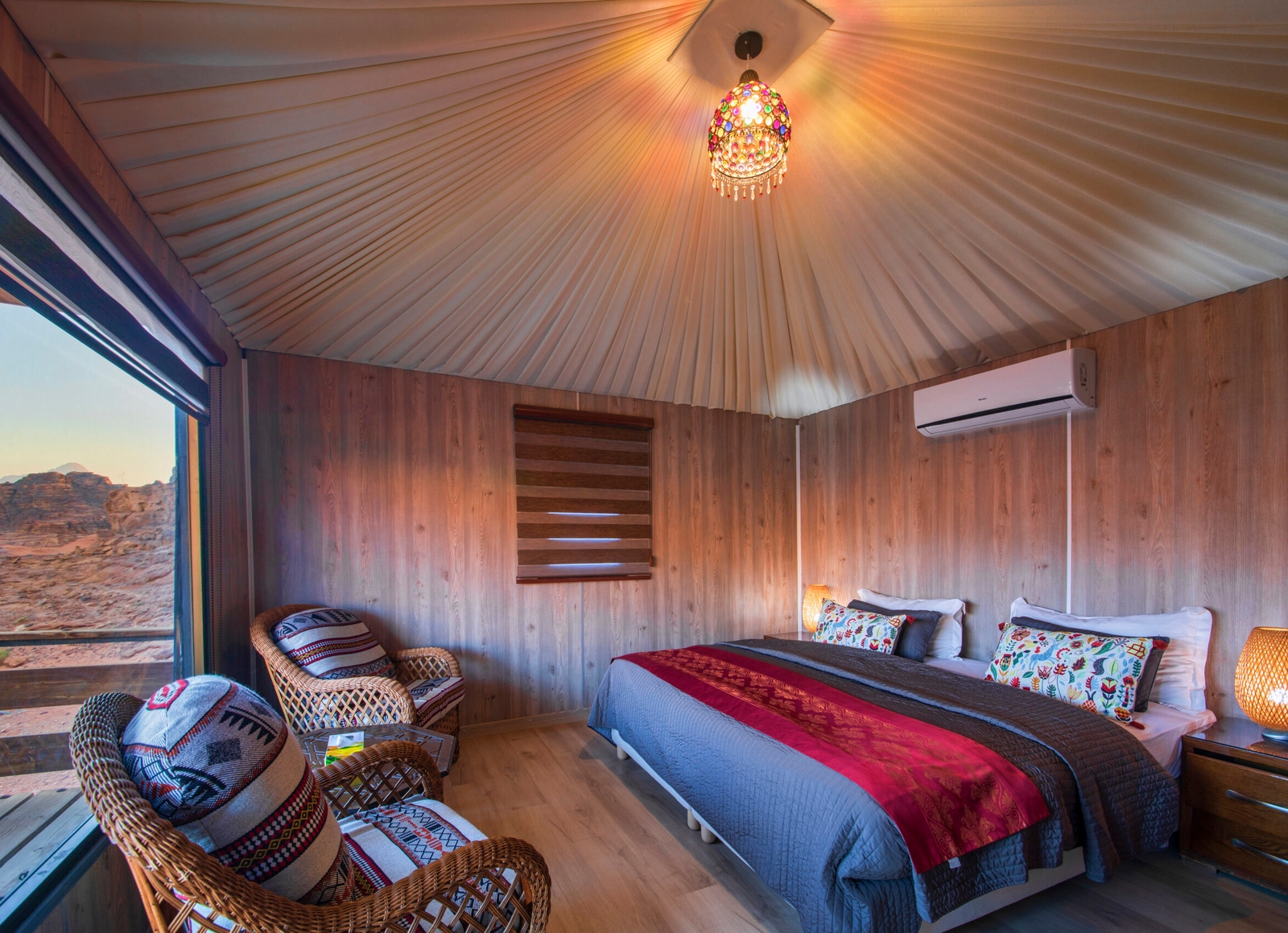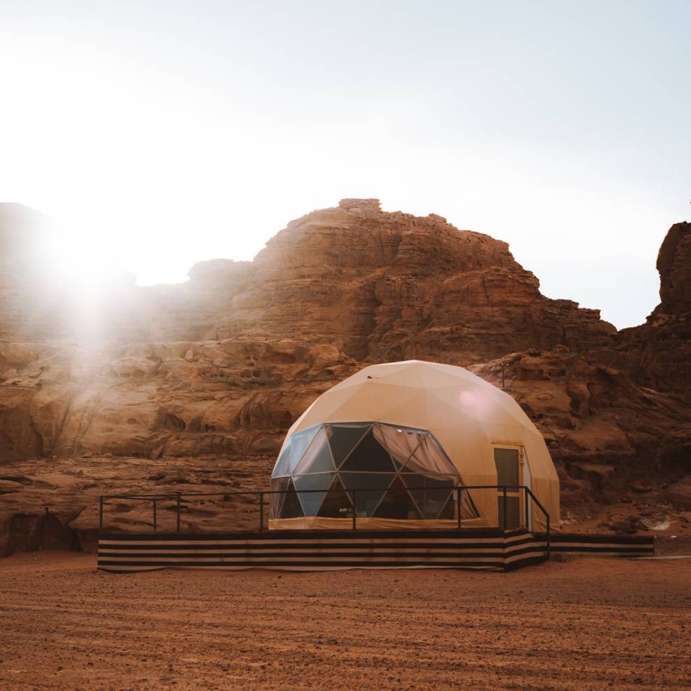 Delicious meals are served in a geodesic dome where the team of chefs use fresh ingredients to create dishes that showcase Wadi Rum’s heritage. On the menu you’ll find a selection of traditional and international dishes.