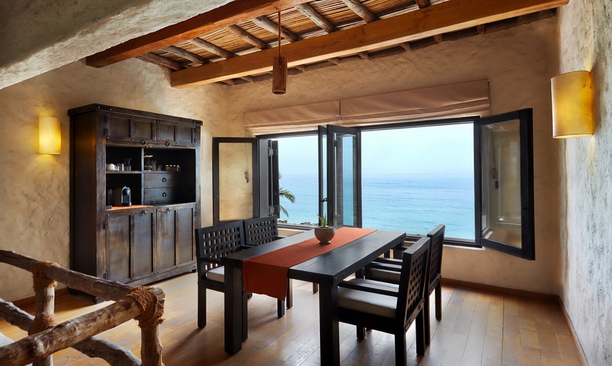 Backed by mountains and fronted by azure ocean, Six Senses Zighy Bay in Oman has spectacular views all round. This sprawling property blends seamlessly with its surroundings, with use of natural stone and wood to create its structures and shine the limelight on the natural features of the landscape around it.