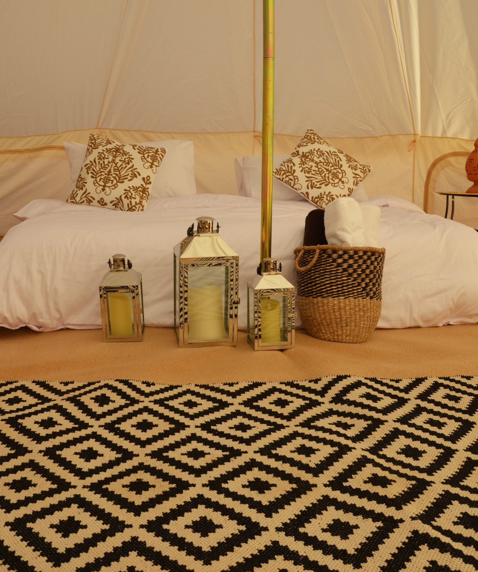 Once you’ve arrived, you’ll be greeted with traditional Arabic hospitality, with sweet tea and dates on offer within this small village of Bedouin-style tents that will become your home for the night. Expect plush mattresses and soft, white linens as good as any fixed hotel, and bathroom tents with soft towels and luxury products to wash the sand from between your toes.