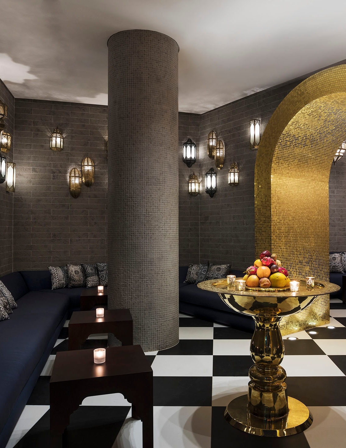 Sitting right above a mesmerising blue lagoon on the Qatar coast, Mondrian Doha is a vivid and flamboyant retreat in the country’s capital. On the outside, the building blends traditional Arabesque elements with swish modern architecture and arresting lighting, while its interiors are truly artworks of their own. The white atrium with its black twisted staircase is a dazzling sight, while the indoor pool is surrounded by arresting geometric patterns and a stained-glass ceiling.