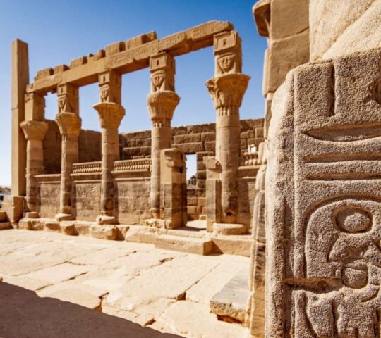 Visit the enchanting temple of Kom Ombo, nestled on the picturesque banks of the Nile River, midway between Luxor and Aswan. This magnificent temple traces its origins back to the Ptolemaic dynasty around 200 BCE and holds a captivating tale of dual deities. Dedicated to Horus, the Falcon God symbolizing keen vision and the love of the people, and Sobek, the crocodile god representing earthly instincts and revered out of fear, this unique double temple embodies the profound notion that within each of us reside both good and bad. Today, you can witness preserved crocodile mummies at the adjacent museum – a small but truly captivating treasure trove.