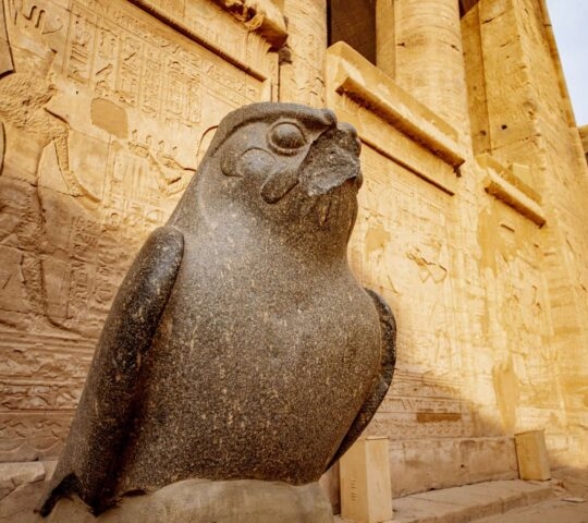 The towering temple of Edfu, also known as the temple of Horus, is extremely well preserved and dedicated to the falcon god, Horus. It’s believed to have been constructed during Ptolemaic times, about 200 BCE, later than many of Egypt’s key monuments. Today, the entire structure of the sanctuary – walls, floor and ceiling – remain intact.