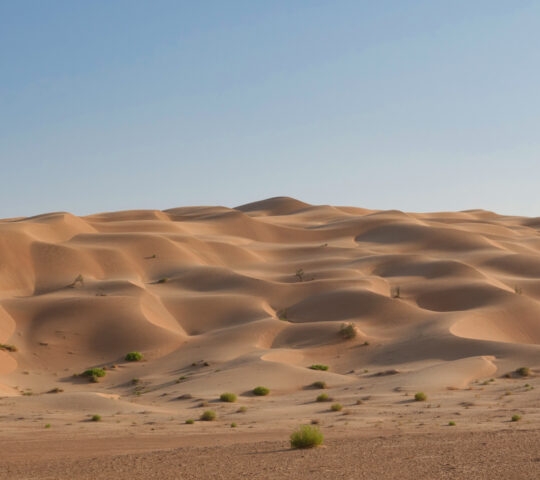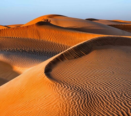 Explore the beauty of the Rub Al Khali Desert today. On the way to Hashman, admire the stunning sand dunes with over 1001 different shades blending together. Set up camp in the midst of a unique setting surrounded by 200m high dunes. During a sunset hike, appreciate the beauty of the world’s biggest sand desert and experience the Bedouin culture with an authentic Omani dinner around a campfire.
