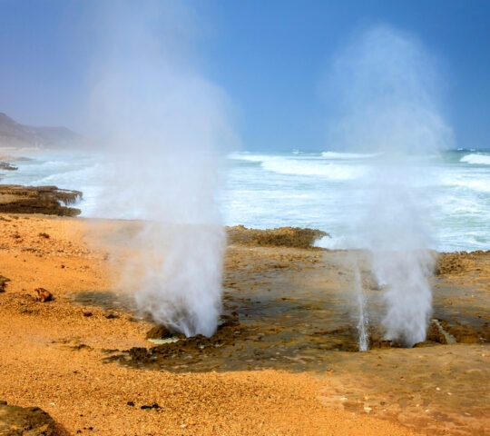 Explore the Southern region of Oman as you visit the Qara Mountains, the tomb and mosque of Old Testament prophet Job. Next stop is to the magnificent sandy beach of Mughsayl, an area characterised by its limestone cliffs, blowholes and the Marnif cave. Afterwards, visit the nearby Khawar Lagoon, home to flamingos, pelicans and storks. End the day with a drive up the mountains for a breath-taking view of the volcanic mountains.
