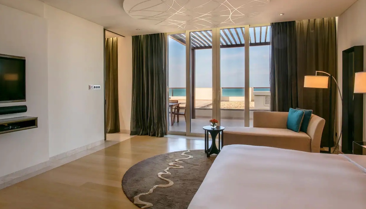 Inside this modern hotel you’ll find contemporary bedrooms with a touch of Emirati glamour, many with ocean views and their own private balconies for watching the sun set over the sea. The hotel draws locals for its excellent dining options: Maté is famous for its Argentina-inspired brunch, while The Café is known city-wide for its excellent Middle Eastern cooking. There’s also cake and coffee in The Library, and fresh seafood cooked Italian style at Beach House.