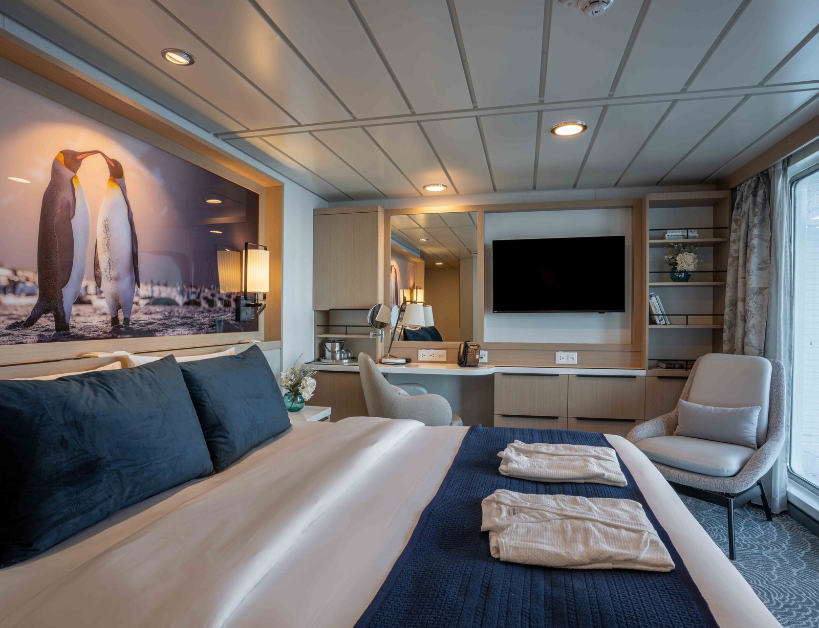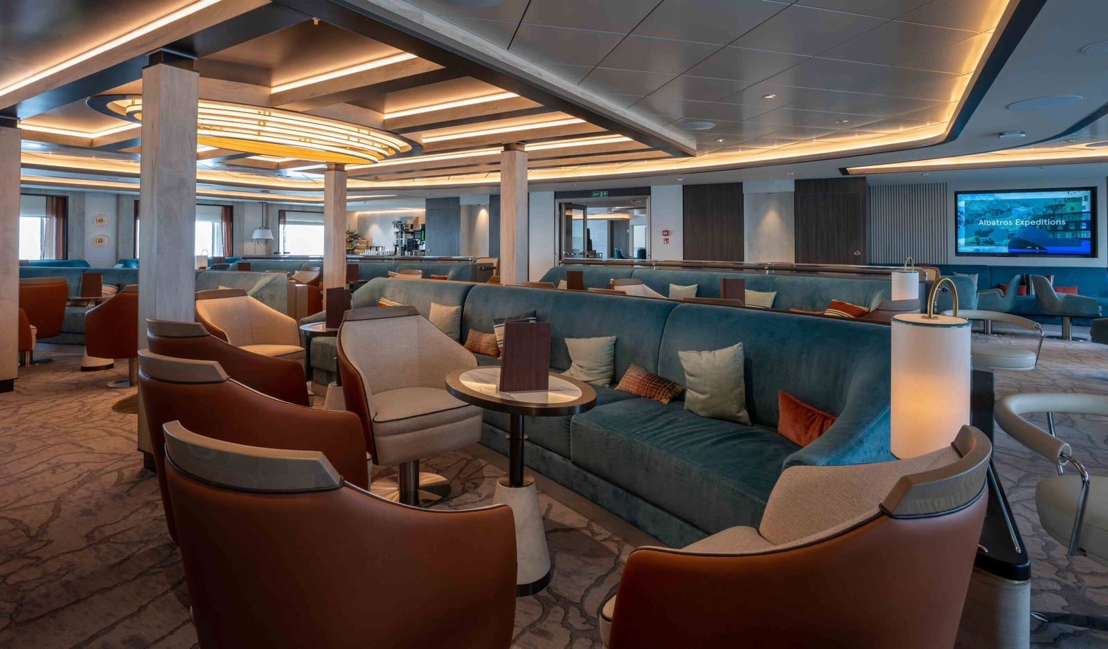 Journey into the depths of Antarctica and the Arctic onboard Ocean Albatros. Part of a new generation of low-energy vessels, the luxury cruiser has four diesel engines and two electro engines, which are all controlled electronically, helping to optimise speed and fuel consumption. The vessel has 94 comfortable suites and staterooms, offering unobstructed sea views, many with their own balcony.