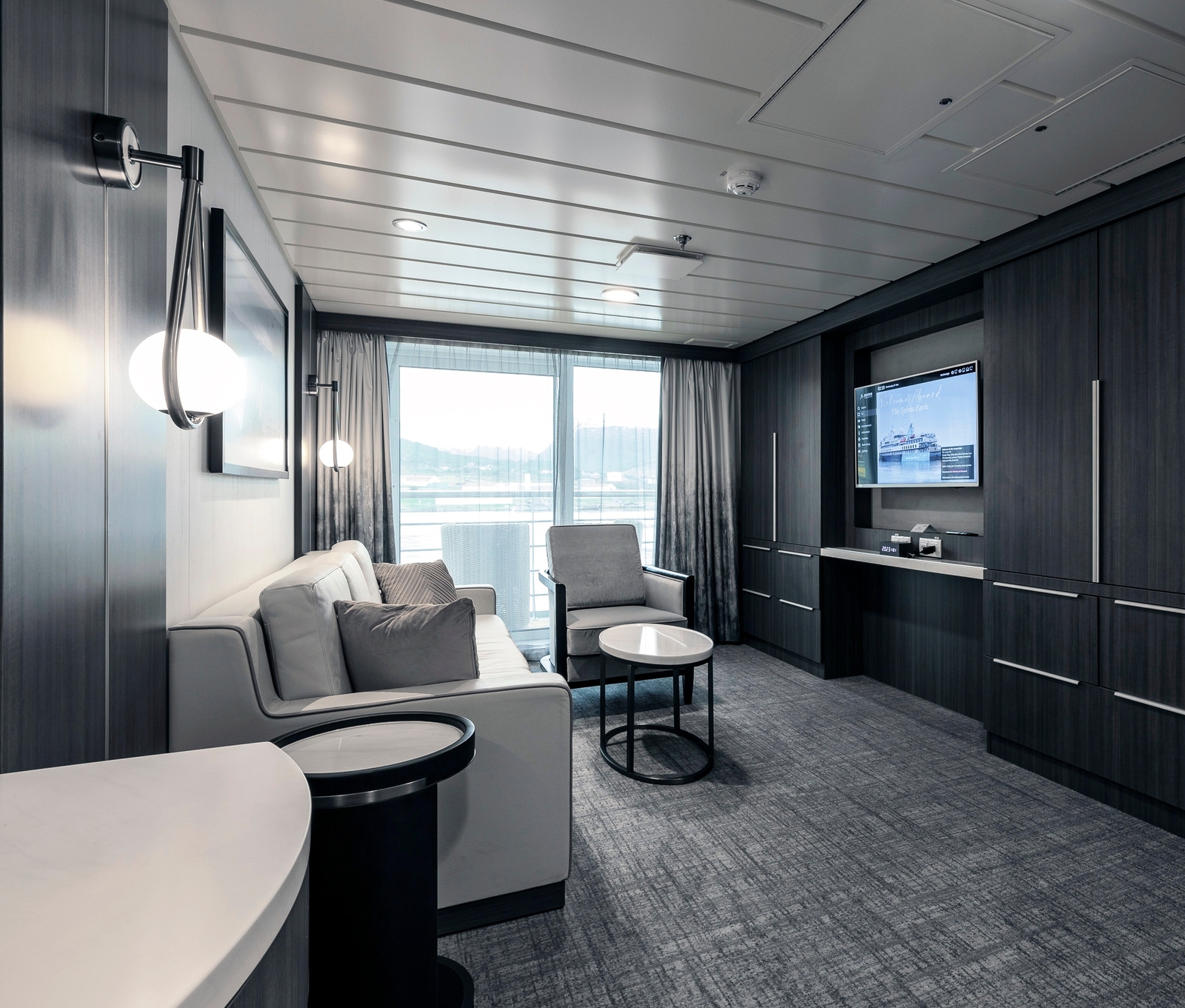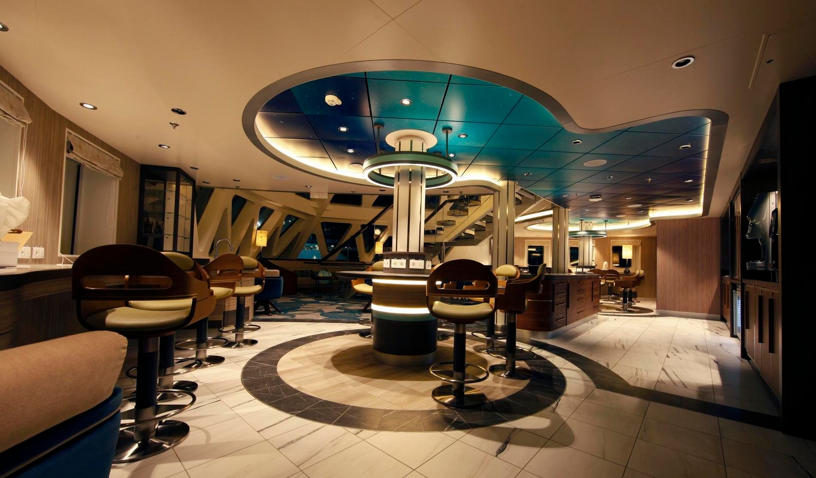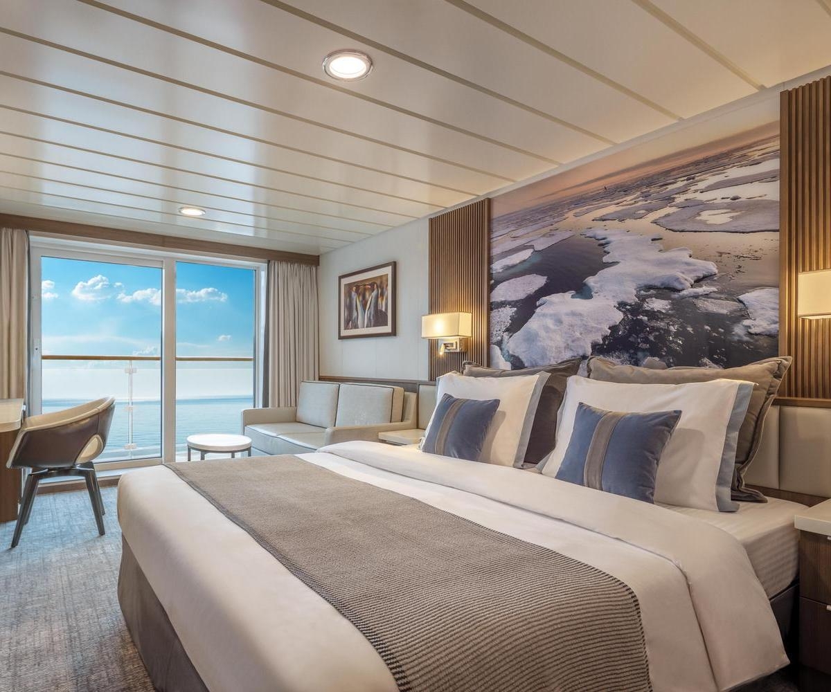 The 70 comfortable cabins can accommodate up to 132 guests. In addition to inviting communal areas, there is a modern lecture lounge, zodiac launching platforms, a restaurant, a gym and a wellness centre.