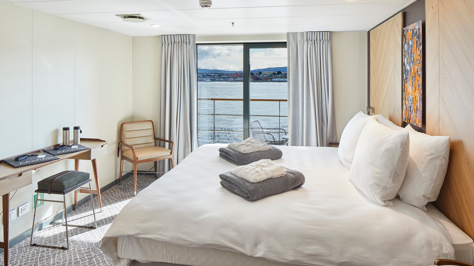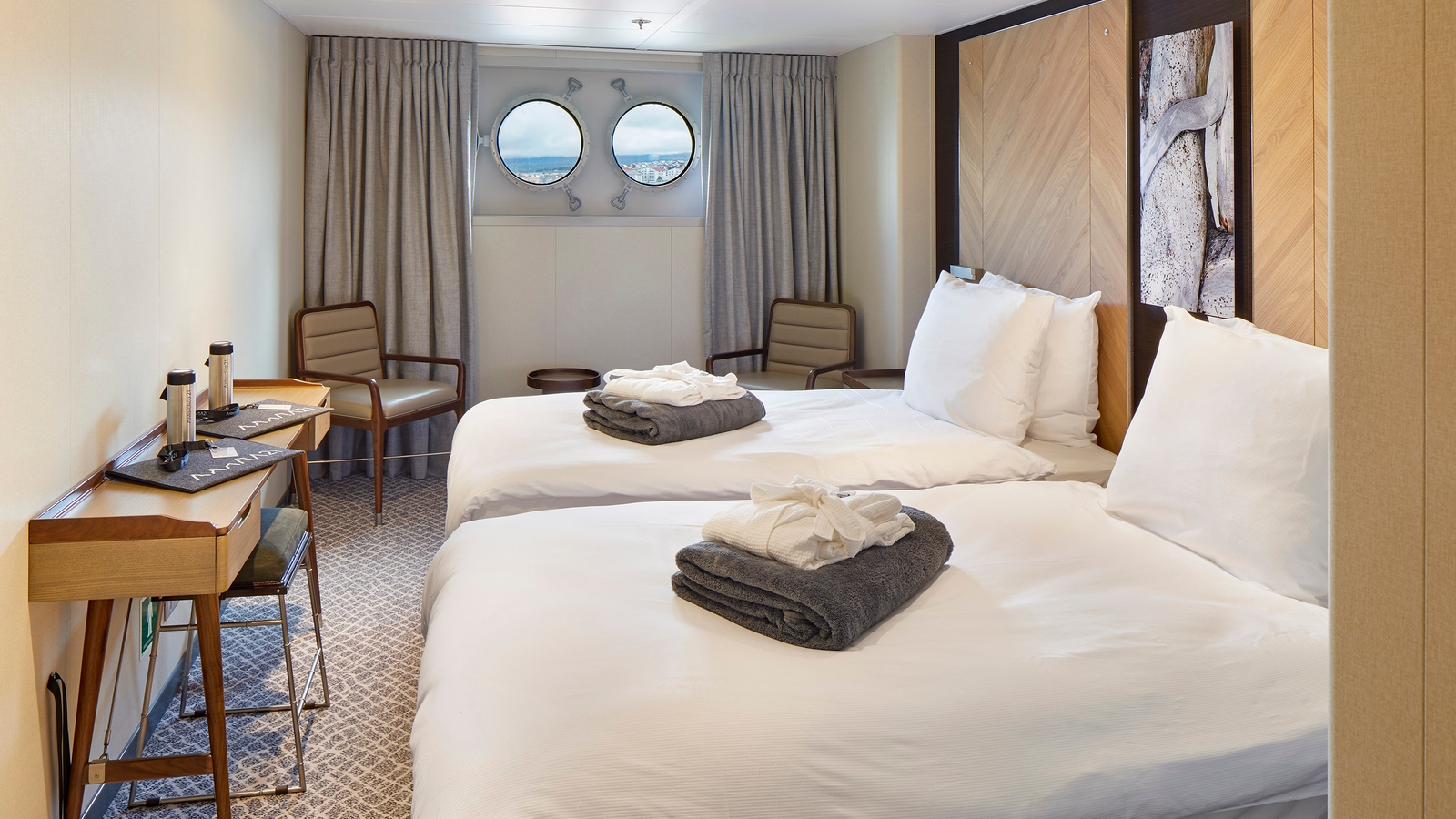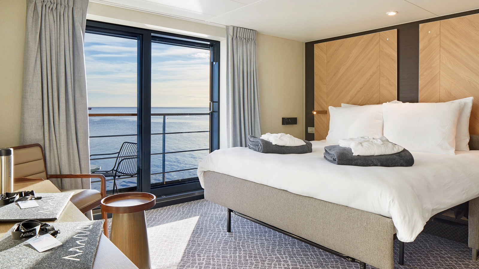 The Magellan Explorer is an expedition vessel custom built for Antarctic cruises. For Antartica21’s air-cruises, the Magellan Explorer has capacity for 73 passengers, but for maximum comfort only 38 cabins are occupied. There are seven categories of accommodation, all with individually controlled heating systems, a sitting area, and a private bathroom with shower, and all categories except Porthole cabins have private balconies. Elegant modern interiors are the work of a renowned interior design studio based in Santiago.
