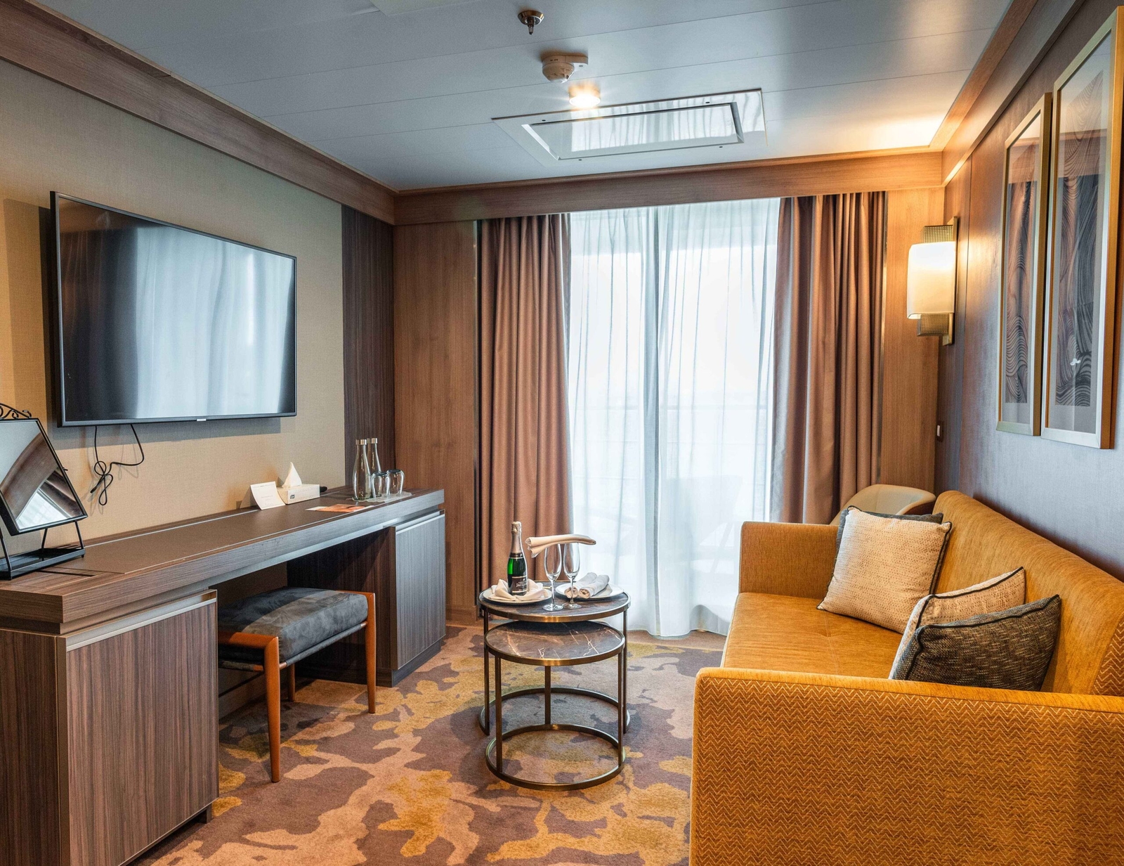 If it’s an active cruise you’re looking for, then kayaking, camping and stand-up paddleboarding can also be arranged. Otherwise, get your steps in on the outdoor track, keep to your exercise programme in the small gym, and unwind with a treatment or two at the spa.