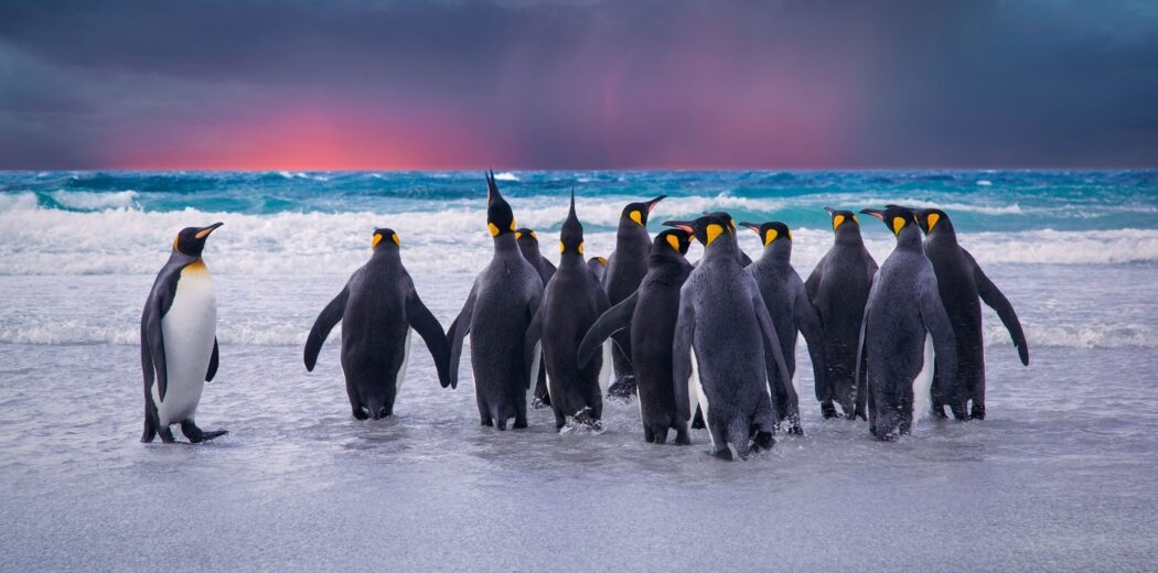 At first, the glass-like water and iceberg-strewn scenery seems completely still and silent – but then you start to notice the subtle noises that fill the chilly air: the faint growl of a blanket of snow falling a few miles away; air bubbles making the ice crackle; the murmuring of a nearby colony of penguins.