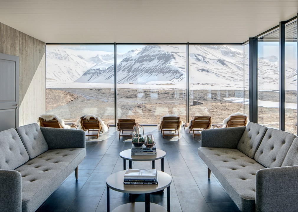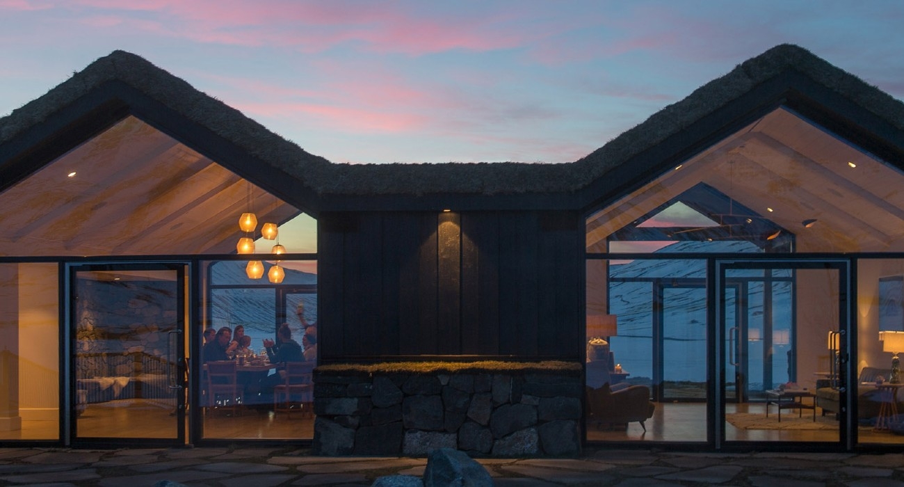 Once a working sheep farm, this sprawling property with its grass roof may look traditionally Icelandic on first glimpse, but its luxurious transformation into an opulent lodge soon becomes apparent.