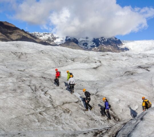 At Sólheimajökull glacier tongue, you’ll get a chance to observe the amazing glacier and take a hike on the ice. The walk isn’t too strenuous and you’ll be accompanied by a knowledgeable, certified glacier guide.