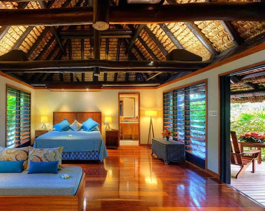 25 bures – a Fijian word for a traditional thatched house – are set around Savusavu Bay, most enjoying views of the ocean and reefs beyond. Some have two bedrooms, ideal for families, while others are more secluded. The opulent Presidential Villas has its own walled garden, spa tub and waterfall.