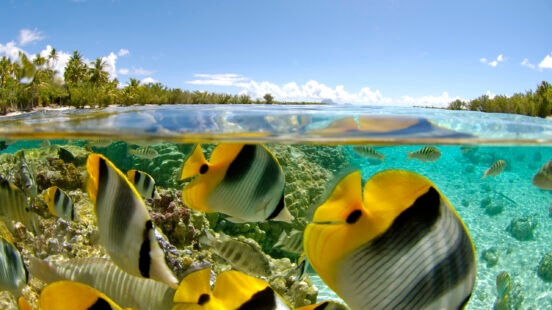 Rangiroa is a must-visit destination for any diving and snorkelling enthusiasts. Over 200 islets make up Rangiroa, the world’s second largest coral atoll, so its surrounding waters are some of French Polynesia’s richest. The Hotel Kia Ora is located on a coconut plantation on the northwest part of the island, which is a utopian part of French Polynesia. Overwater villas are designed in traditional Polynesian style, and the surrounding views of the open ocean are wonderful. Couples can spend time here sipping sundowners in the overwater Miki Miki Bar, relaxing in the infinity pool or snorkelling and diving in Rangiroa’s lively waters.