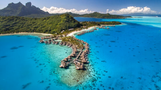 A luxurious lagoon side resort, Conrad Bora Bora Nui is surrounded by white sandy beaches and breathtaking sunset views. With rooms right on the water, this dreamy resort is set in a private cove on Motu Top’opua that has an incredible view of Mount Otemanu as its backdrop. Panoramic lagoon views, cultural activities and luxury dining opportunities make this coveted resort one of Bora Bora’s best.