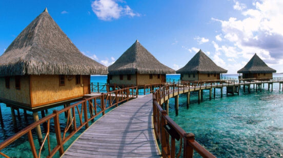 A foodie haven, this secluded property houses an impressive six restaurants and bars, offering everything from French to Chinese cuisine. After you’ve feasted on delectable dishes, choose between Upa Upa Lounge Bar and Iriatai Wine Bar for sundowners or make a splash at the swim up Tarava Pool Bar. A hilltop spa with stunning views, a pool, fitness centre, miniature golf and various water activities ensure no couple that stays here is ever bored.