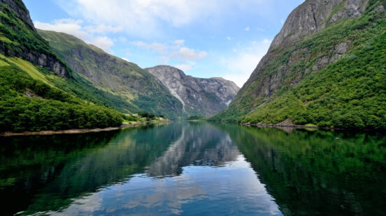 The perfect way to explore Norway is by sailing along its beautiful fjords. Formed millions of years ago during the Ice Age, the fjords stretch along the coast. Some of the biggest are Sognefjord, Hardangerfjord and Nærøyfjord.