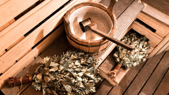 Finnish saunas feature a vasta or vihta: a bunch of leafy birch to gently beat your skin, relaxing your muscles. You don’t get that at your local gym, do you?