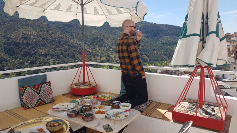 However, I think that the lunch on that day is what Byron and I will remember the most. We stopped off in the town of Moulay Idriss and our private driver parked up in front of restaurant terraces full of tourists. I did not have much hope. We were then taken down a narrow back street into a small house and onto our own private terrace. We had views over the valley and town and more food than you can imagine.